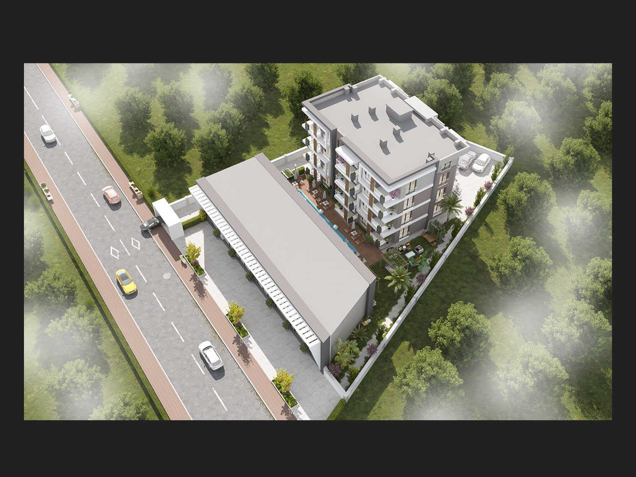 2.370m2 inşaat alanı 20 adet 1+1 7 adet dükkan dan oluşmakta Proje özellikleri: Açık otopark Elektrikli panjur sistemi Üçlü ankastre set Lake kapı Hilton lavabo Vestiyer , mutfak ve tv ünitesinde mobilya detayları Doğalgaz ana kolon tesisatı Daire içi doğalgaz mobil boruları ve petekleri 3 lü ankastre set 1 adet klima